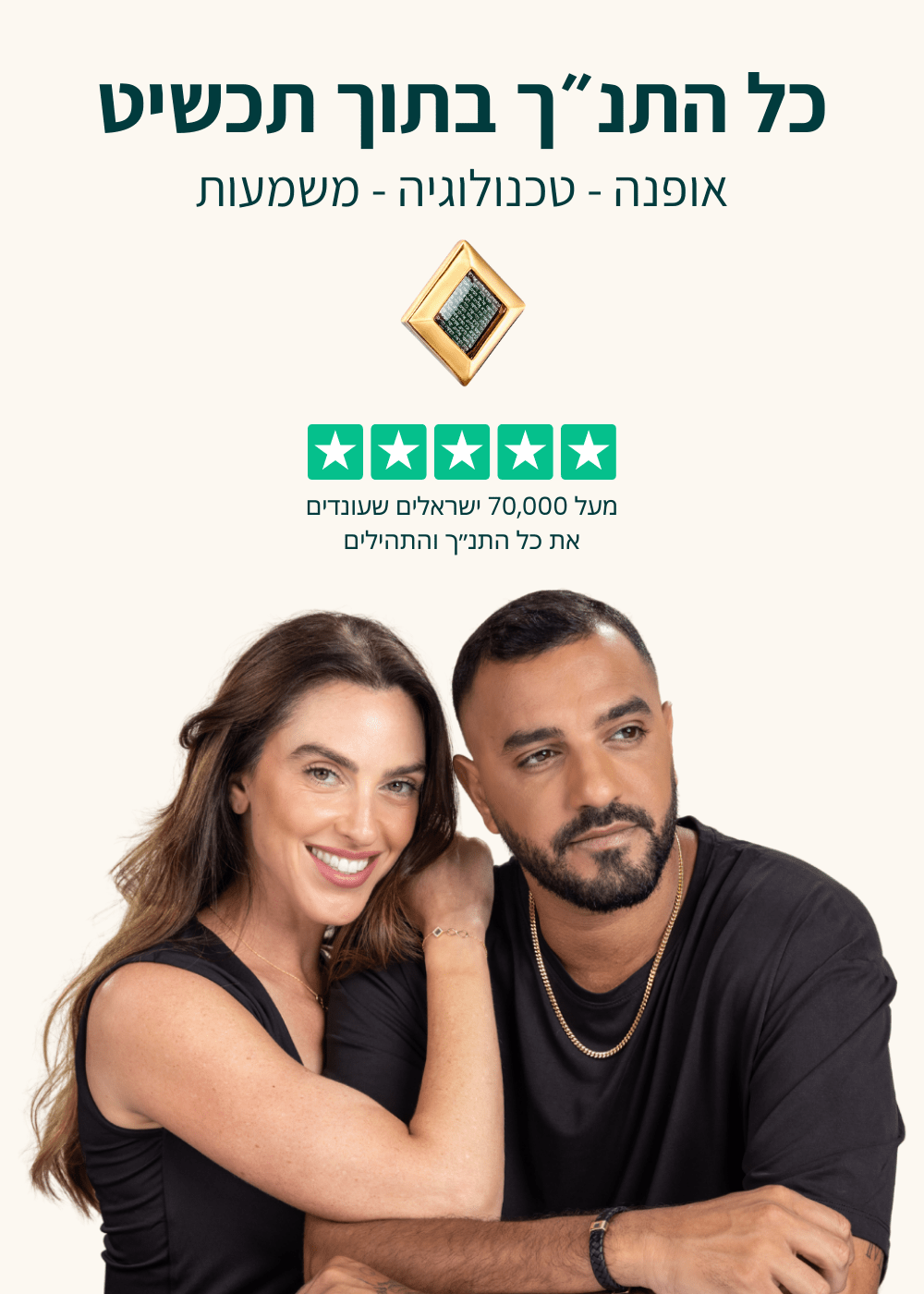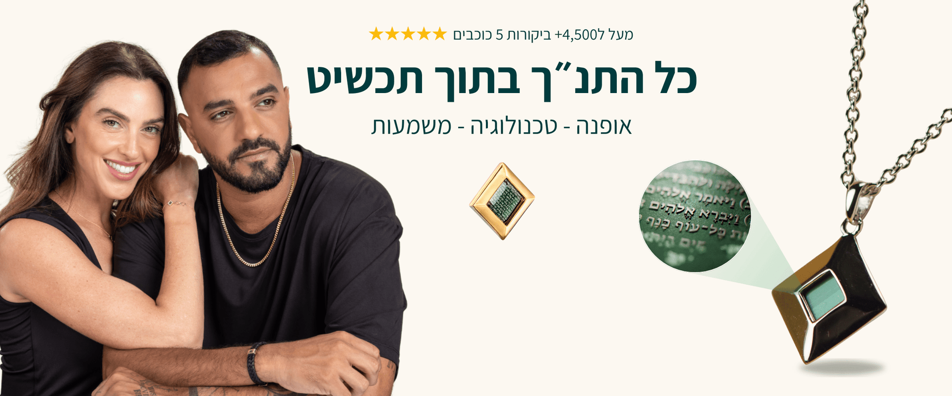 בכל תכשיט מהקולקציה שלנו ישנה לוחית עליה חרוטים כל 929 פרקי התנ״ך ותהילים באמצעות טכנולוגיית ננו חדשנית ופורצת דרך.