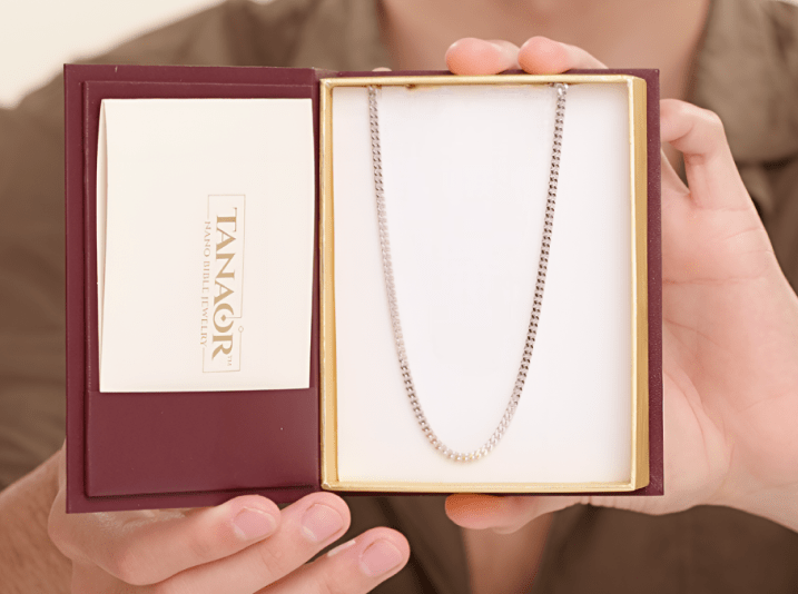 שרשרת הבוקס האייקונית יחד עם טכנולוגיית הננו תנ״ך מבית תנאור מעניקה סטייל נקי, חד וגברי בזמן שריבוע התנ״ך נמצא בסוגר התכשיט ומעניק לעונד תחושה של שמירה והגנה..