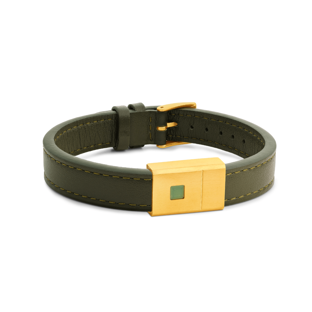 - הצמיד עשוי מעור איטלקי חלק בצבע ירוק בעובי של 12 מ״מ ואורך של 250 מ״מ.